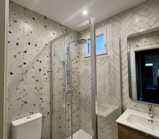 je recherche pour achat F2 minimun rez de chaussee ou etage avec ascenseur balcon ou terrasse et emplacement parking avec si possible douche pas baignoire pas de gros travaux pre