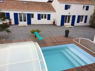 Maison avec piscine couverte de 163 m² située dans le centre de Barbâtre sur l'île de Noirmoutier, proche de la plage derrière la boulangerie dans une ruelle à sens unique. Maison
