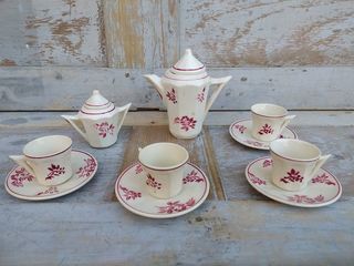 Jouet Service à Thé Dinette Faïence Digoin (à confirmer) Art Déco Hauteur de la théière 12,5cm Bon état de l'ensemble
