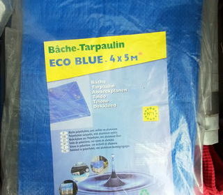 Bâche de protection de 12x8m avec un coin un peu froissé mais non déchiré Sur les photos la bâche n'est pas déployée sur ses 96m²