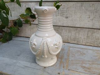 Ancien Vase Faïence Blanche de Malicorne Émile Tessier Fleurs de Lys Signé ET (Émile Tessier) Hauteur 22cm, largeur 13cm. État : Présence de petits éclats et égrenures