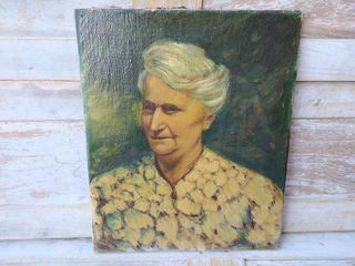 Tableau Huile sur Toile Portrait Femme Signé et Datée (à identifier) Huile sur toile format 45,5cm x 38cm Bon état