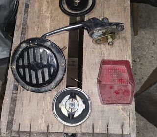 Bonjour à vendre ce lot d'accessoires anciens automobile comprenant 1 bouchon de réservoir 1 klaxon 1 feu arrière 1 poignée de porte 1 centre de volant Pas d'envoi Remise e