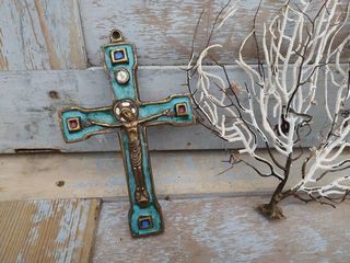 Crucifix Croix Bronze Émaillé Dominique Piechaud 1950 Hauteur 14cm, largeur 10,5cm Très bon état
