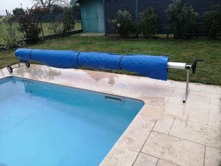 Vends enrouleur à bâche en Aluminium + Inox Servait à couvrir une piscine de 9m x 4m La bâche est en mauvais état ( à changer ou à réparer ) Prévoir véhicule adapté pour retrait