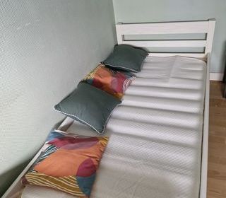 Lit bois blanc 90*190 + matelas bultex de qualité + chevet assorti . Prévoir enlèvement Visible sur rendez-vous