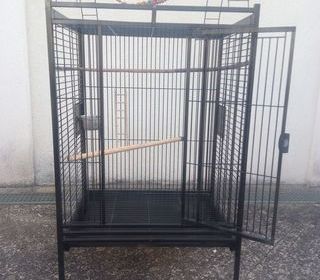Vends cage perroquet sur roulettes en bon état. Longueur 77 cm Profondeur 57 cm Hauteur totale 127 cm (Hauteur cage 90 cm) Écart entre les barreaux: 20 mm Épaisseur des