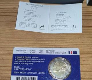 Bonjour je vends ces pièces neuves - 2 Euros Erasmus BE - 2 Euros Erasmus BU Coin card Pas d'envoi Remise en main propre à 37 Azay -Le-Rideau