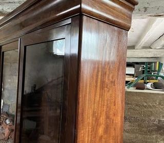 armoire avec deux portes vitrée en bon état, il est possible de venir la voir. Elle peut servir de bibliothèque dans un salon ou dans un bureau. Le bois ressemble à de l'acajou. ï