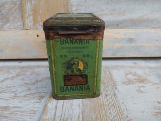 Rare Boite Banania L'Antillaise Crèmes et Entremets Hauteur 12,5cm, largeur 8cm État : Légères déformations, usure et oxydation