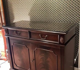 Meuble acajou style anglais recouvert d'un verre fumé épaisseur 4 mm Visible sur rendez-vous