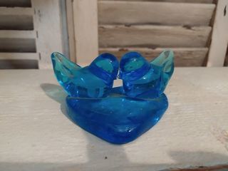 Couple d'Oiseaux sur un Coeur Verre Moulé Signé Ron Ray 1992. Saint-Valentin Largeur 12cm, profondeur 10,5cm, hauteur 5,5cm. Très bon état.