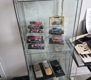 vitrine tres bonne etat avec eclairage et voitures de collection