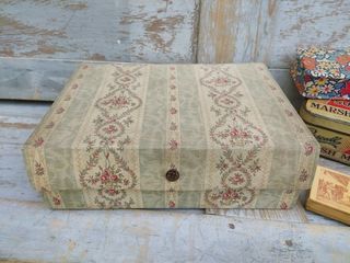 Ancienne Boite à Couture Mercerie Tissu Motif Fleurs Style XVIIIème Format 29cm x 20cm x 9,5cm Bon état, légère usure et salissure par endroit