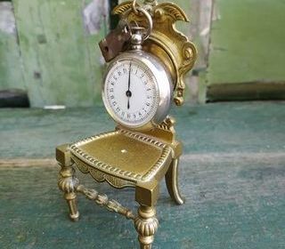 Ancien Porte-Montre à Gousset Chaise Bronze (Le chronographe n'est pas compris dans la vente) Hauteur 15cm, largeur 7cm, profondeur 6cm. Bon état, il y avait probablement à l'ori