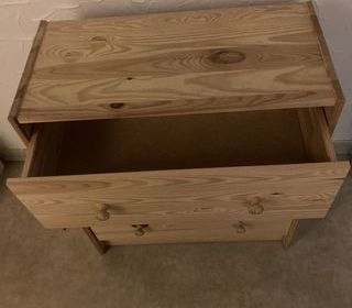 Vends commode en pin 3 tiroirs en très bon état. Hauteur : 70 cm Largeur : 61 cm Profondeur : 30 cm.