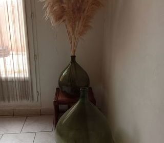 Vends marie jeanne en verre couleur vert, la grosse mesure: H66cm, et d'un diamètre de 50cm, très rare dans cette taille. La petite a une hauteur de 47 cm et un diamètre de 35cm. L