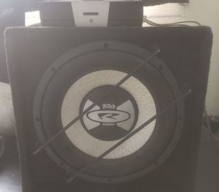 Caisson monté d'un subwoofer BOSS Audio Systems 1200W Dimensions L: 405mm x l: 385mm x h:395mm Equipé d'un ampli OXYGEN SPIRAL T100 qui peut être vendu séparément A récupéré sur