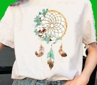 Un superbe tee-shirt imprimé d'un Carillon Éolien. Encolure arrondi. Manches courtes. Finitions impeccable NEUF