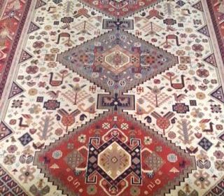 Velours noué main en laine,fondations chaines,trames et franges coton Dimensions: 2,1 m X 2,8 m Caucase: Pérépédile (rare en grand format) collection,collector.Motifs cornes de b