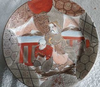 Ancienne assiette murale du XIXème siècle. Porcelaine Satsuma , peinte à la main . Décor émaillé et or représentant 2 personnages Asiatiques . Diamètre : 18 CM . Excellent état