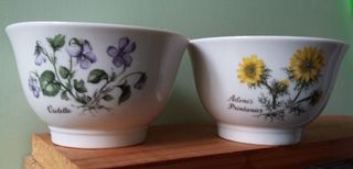 Anciens bols en porcelaine fine Bavaria Winterling pour Mobil . Création pour Mobil . Thème floral : Adonis Printanier et Violette . Hauteur : 8 cm .... Diamètre : 13 cm . Exce
