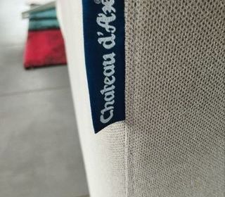 Canapé d'angle Château d'Ax. Etat impeccable, non fumeur. Couleur gris, tissu anti tâches. Coussins déhoussables. Hauteur: 65cm Profondeur: 80cm et 100cm côté banquette. Longueu