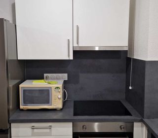 A louer joli F2 composé d'un salon cuisine en un avec bar, une salle de bains avec baignoire, un wc séparé et une chambre à coucher. Il y a les éléments de cuisine avec four et pla