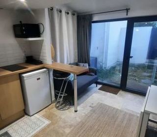 Studio avec 1 pièce de vie, une cuisine ouverte aménagée et équipée le tout ouvert sur un jardin de 10 m2, une salle d'eau avec WC er une chambre en mezzanine. Porte et baie vitrée