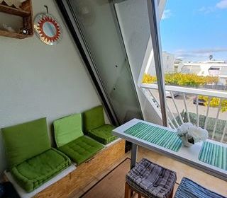 Location meublé f2 1 er étage terrasse cellier proche commerces dans station balnéaire plage à 500 m