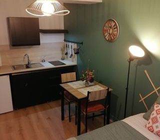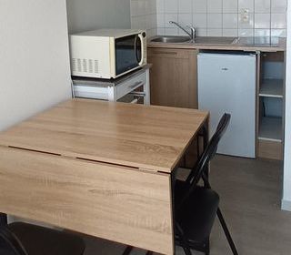 Ce studio est composé d'un coin nuit, d'un salon, d'une cuisine meublée et équipée, ainsi que d'une salle de douche et WC. Ce logement est proche de toutes commodités (boulangerie