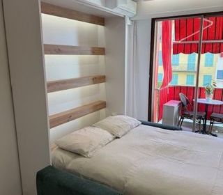 Particulier loue T1 quartier Procé, très bon état, lumineux, entrée avec placard, pièce principale avec baie vitrée, cuisine séparée avec plaques vitrocéramiques et placard, salle