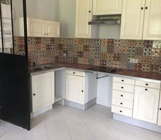 à louer : belle maison individuelle rénovée , avec terrasse , grand cour avec gravillons , ( ne convient pas aux chiens ! ) . à coté d'un petit village avec écoles et collège