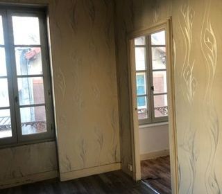 à louer : belle grande maison mitoyenne avec cour fermée 120 m² habitable. Centre de village , 03430 Villefranche d' Allier . RDC : entrée / séjour avec cuisine ouverte , WC , c