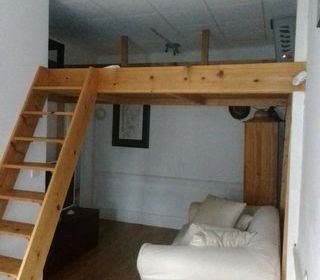 Au centre du village au 1° étage d'une petite copropriété de 7 logements A l'est une grande pièce cuisine et salle à manger. A l'ouest une chambre avec dressing et une pièce salo