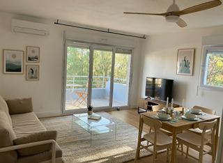 Location meublé f2 1 er étage terrasse cellier proche commerces dans station balnéaire plage à 500 m
