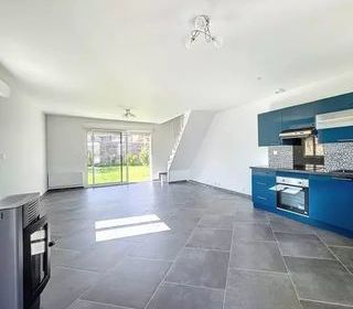Maison de construction 2020 aux normes BBC offrant en rez-de-chaussée vaste séjour avec poêle à granulés cuisine ouverte aménagée et équipée à l'étage un palier desservant deux cha