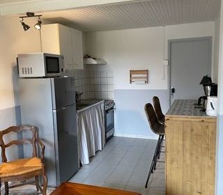 A louer centre ville de Marseillan proches de tous commerces f1 meublé au 1er étage d'un immeuble calme et ensoleillé comprenant un séjour séparer d'un bar us chambre en mezzanin