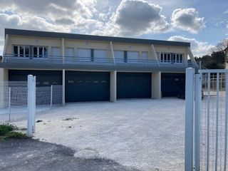 A LOUER av Kennedy à Nîmes : Une surface de stockage de 43 m² env. avec point d'eau, fermé par un portail électrique au rez-de-chaussée ; avec à l'étage un espace bureaux de 42 m²