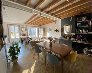 MOLIERE DUPLEX 80 m² clair, rénové, 5ième étage sans ascenseur au niveau 1: un séjour avec un bar en forma cuisine américaine, 1 WC au niveau 2 : une mezzanine, deux chambres