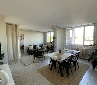 Appart ancien rénové loué meublé , 1er étage sur 2 , terrasse 24 m2 , plein Sud , vue 180° , briques apparentes , 51,1 m2 , chauffage électrique , calme , loyer 640 euro plus 30 e