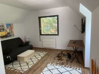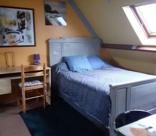 La chambre est de 16 m², avec une salle d'eau dans une maison, de 115 m² dans laquelle vivent 3 locataires à l'année. Salle à manger, cuisine, équipée donnant sur un jardin de 250