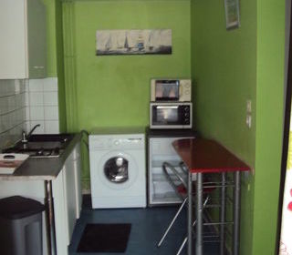 Cuisine avec plaque frigo congélateur micro onde machine à laver le linge salon 1 chambre fenêtres double vitrage libre loyer 420 + charges 10 euros (eau) appartement rénové