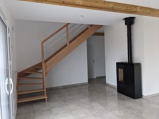 Maison récente de 2023 en campagne situé à 6 mn de château Gontier, Composé d'un agréable séjour exposé sud, agrémenté d'un poêle à pellet, cuisine semi équipée (meuble de cuisine
