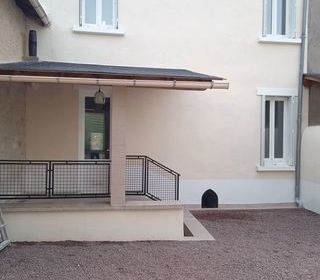 à louer : belle grande maison mitoyenne avec cour fermée 120 m² habitable. Centre de village , 03430 Villefranche d' Allier . RDC : entrée / séjour avec cuisine ouverte , WC , c