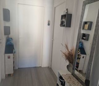 Frontignan, centre ville jolie maison avec petit garage , balcon , climatisation 55M2 comprenant au 1er étage , un hall, un séjour lumineux avec cuisine ouverte, 2 chambres dont u