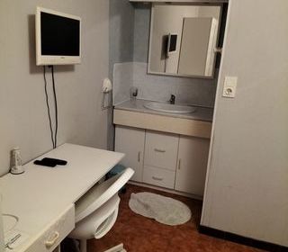 Chambre à louer de 14m2 grand lit , bureau , télévision. Wifi fibre, avec un lavabo dans la chambre. Petite cuisine avec les locataires, frigo , plaque électrique, micro ondes et