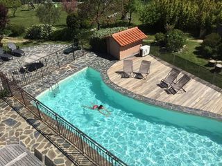 La Casa del gat, villa de charme au calme en pleine nature, grande piscine privée (5x11m) chauffée de mi-mai à fin septembre. Grand bain nordique (jacuzzi " naturel " chauffée au b