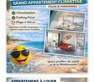 Bonjour, Amis vacanciers, vous recherchez des vacances en bord de mer ? avec le soleil la plage a 150m je vous presente votre appartement 43m² avec 8 couchages vous séduira