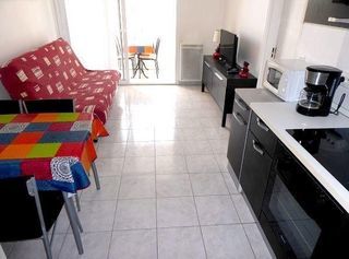 T1 bis de charme pour 4 a 5 personnes a la Grande Motte a 4 mns de la mer et de ts commerces par une passerelle.comprend 1 sejour avec clic clac neuf et une chambrrtte avec 1 lit d